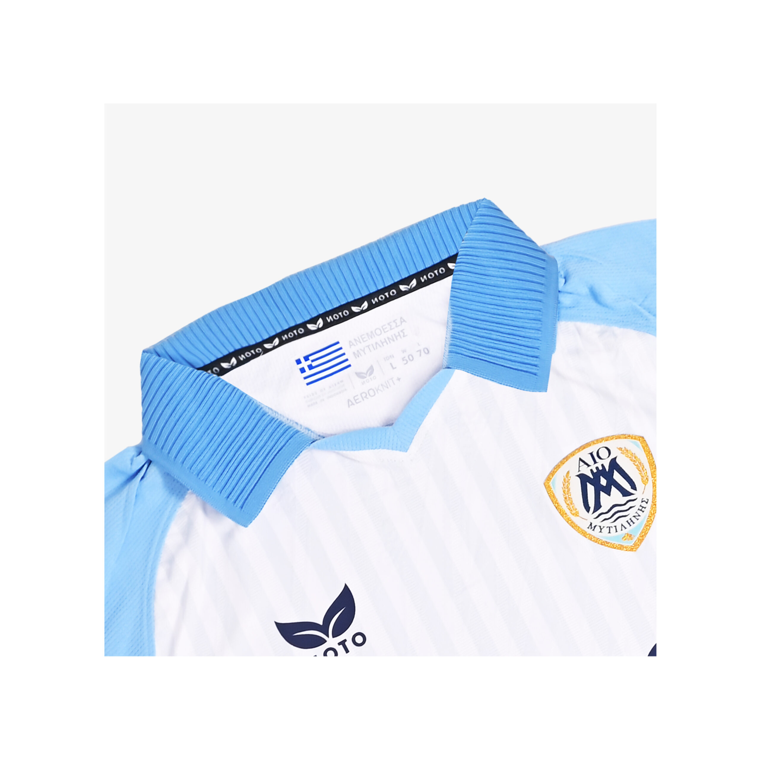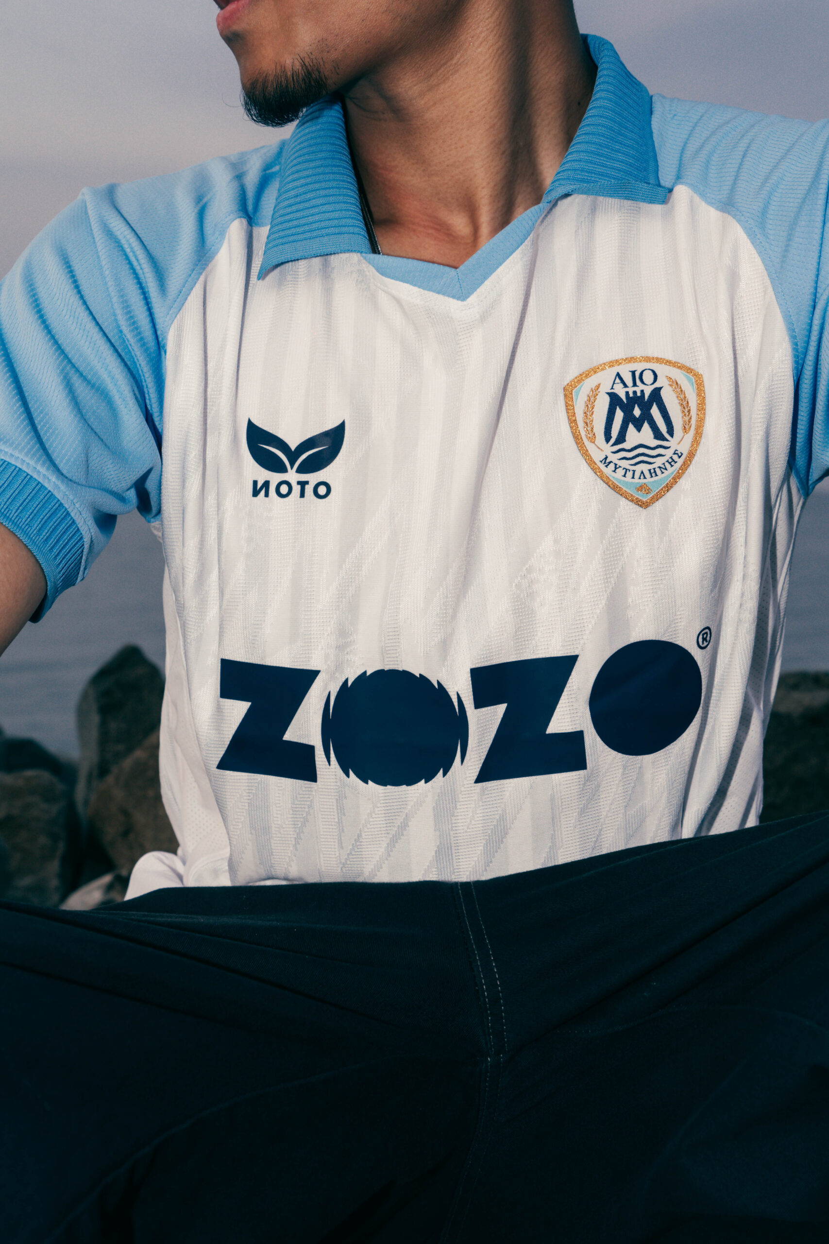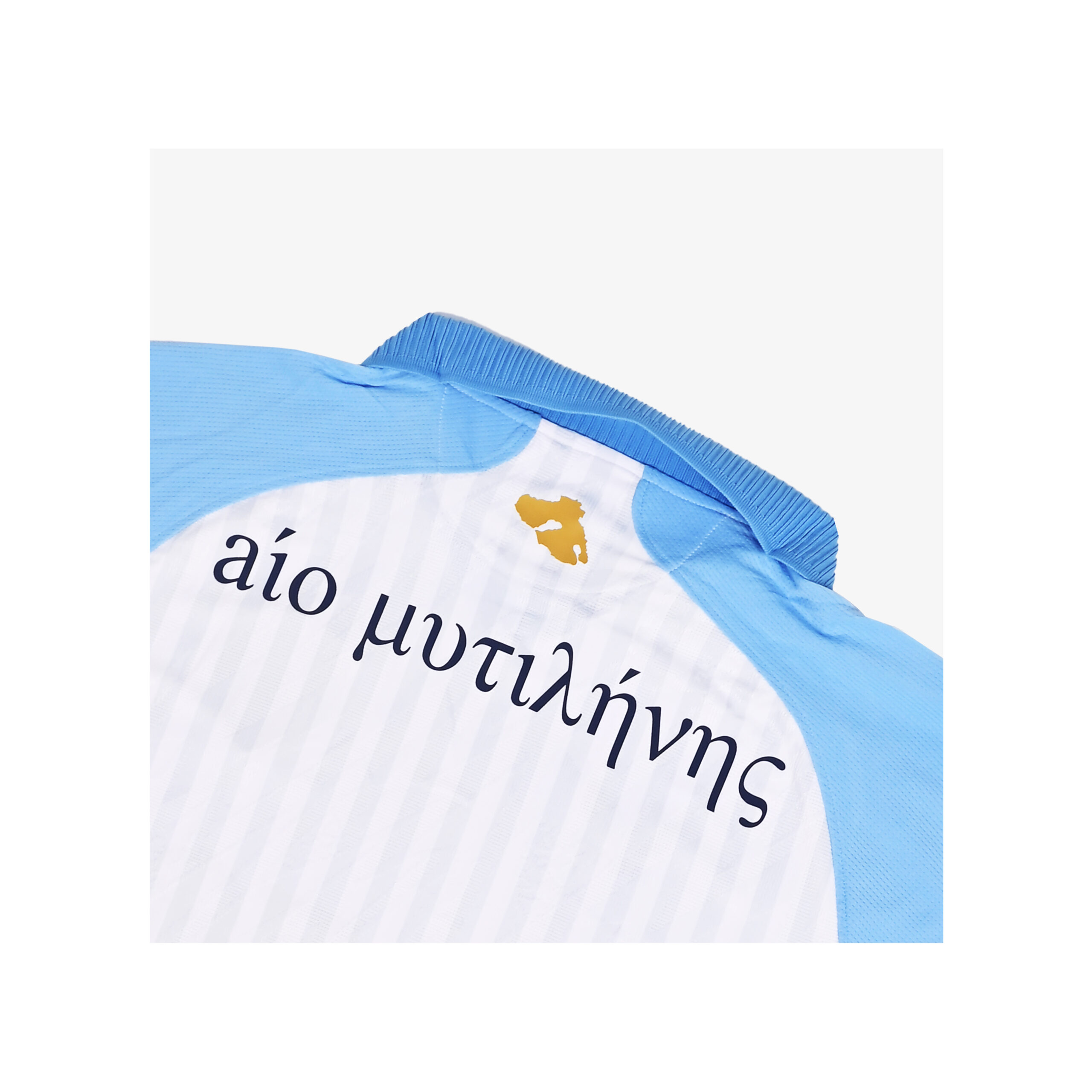 The home jersey takes inspiration from the island of Lesvos. Its clean white base reflects the stone and marble that define the island’s architecture, while subtle blue detailing nods to the surrounding Aegean waters. Simple, grounded, and true to the club’s heritage, it represents identity and pride both on and off the pitch.