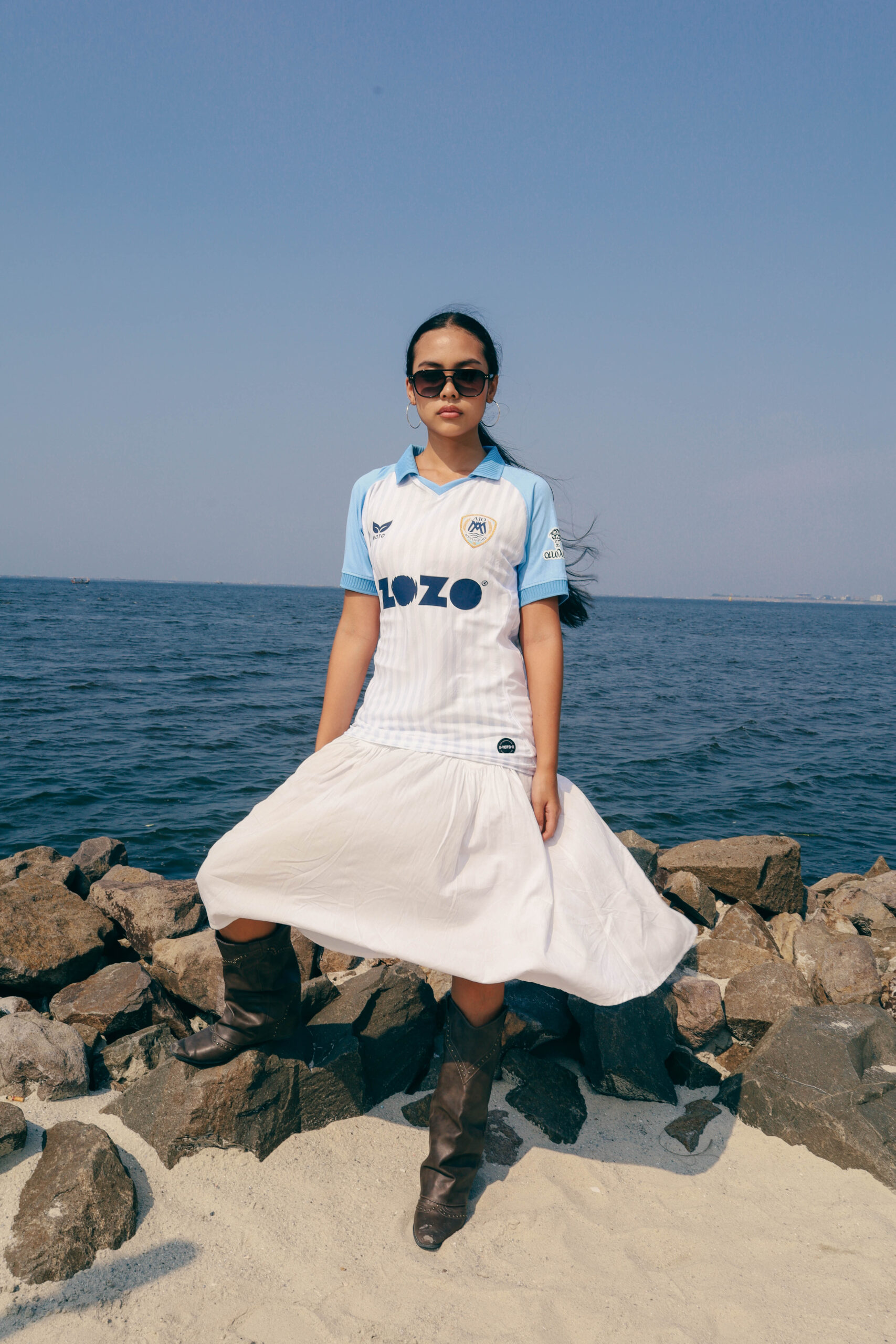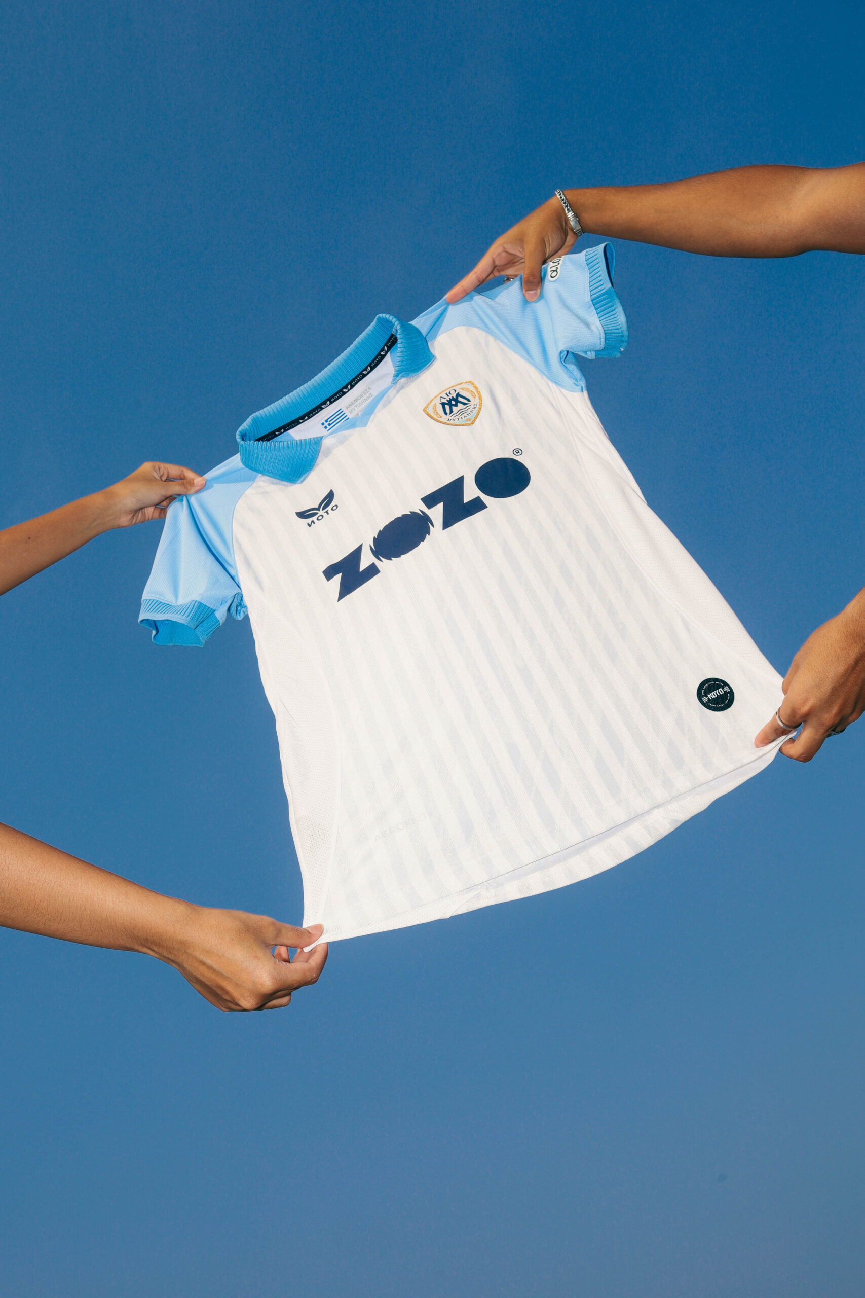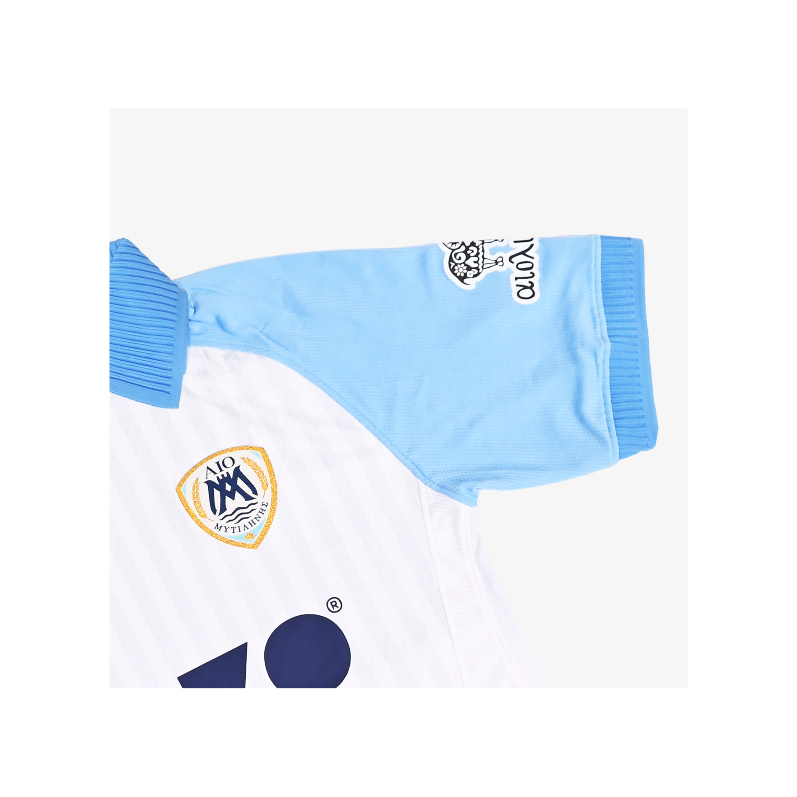 The home jersey takes inspiration from the island of Lesvos. Its clean white base reflects the stone and marble that define the island’s architecture, while subtle blue detailing nods to the surrounding Aegean waters. Simple, grounded, and true to the club’s heritage, it represents identity and pride both on and off the pitch.
